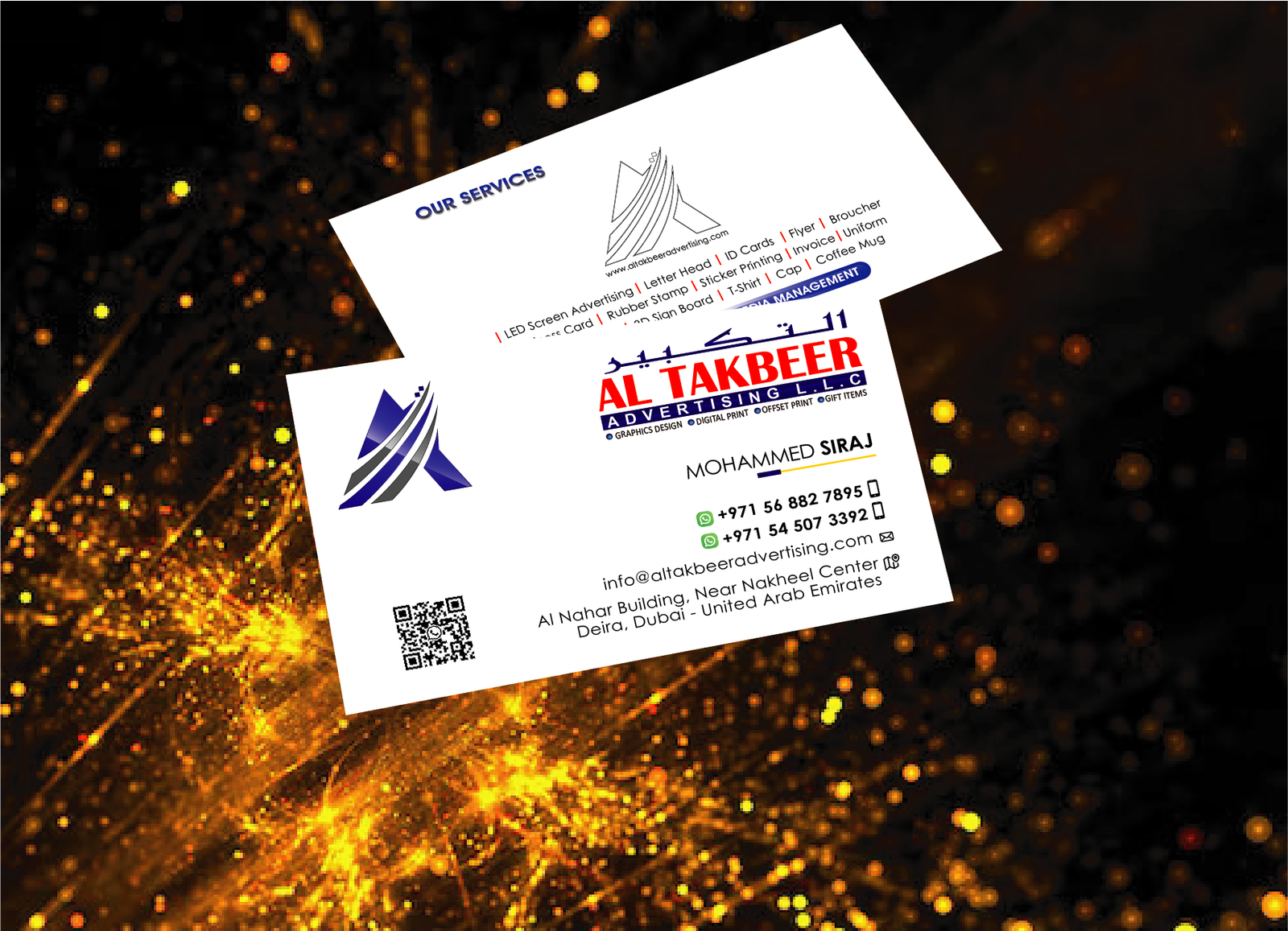 Driven by a passion for excellence and a customer-first approach, Al Takbeer Advertising L.L.C. partners with businesses across diverse industries to enhance visibility, strengthen brand identity, and achieve lasting market presence. Whether you are a startup or an established enterprise, we provide end-to-end solutions that turn ideas into visual experiences.